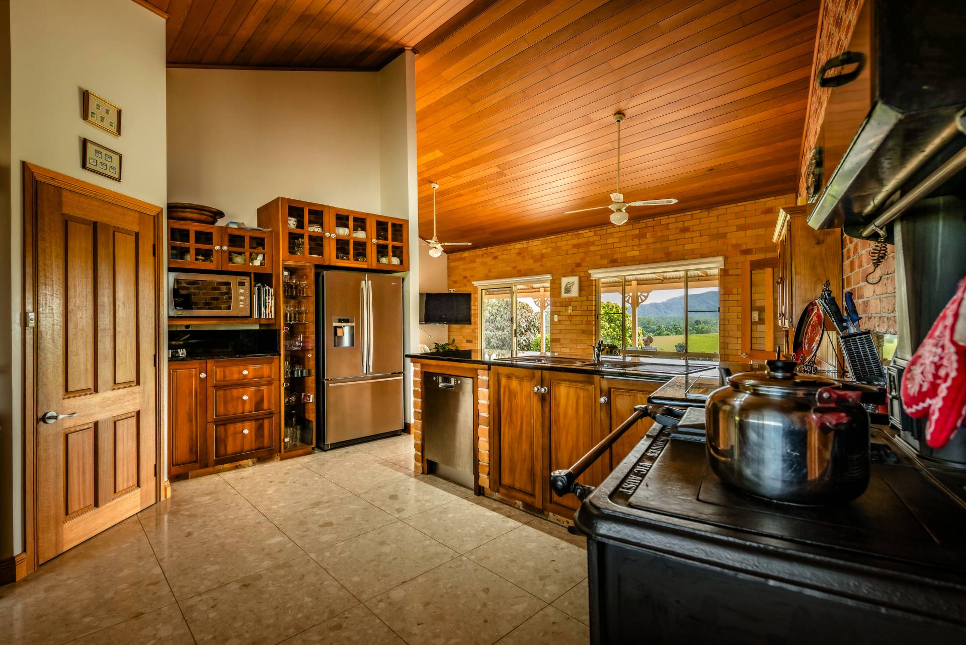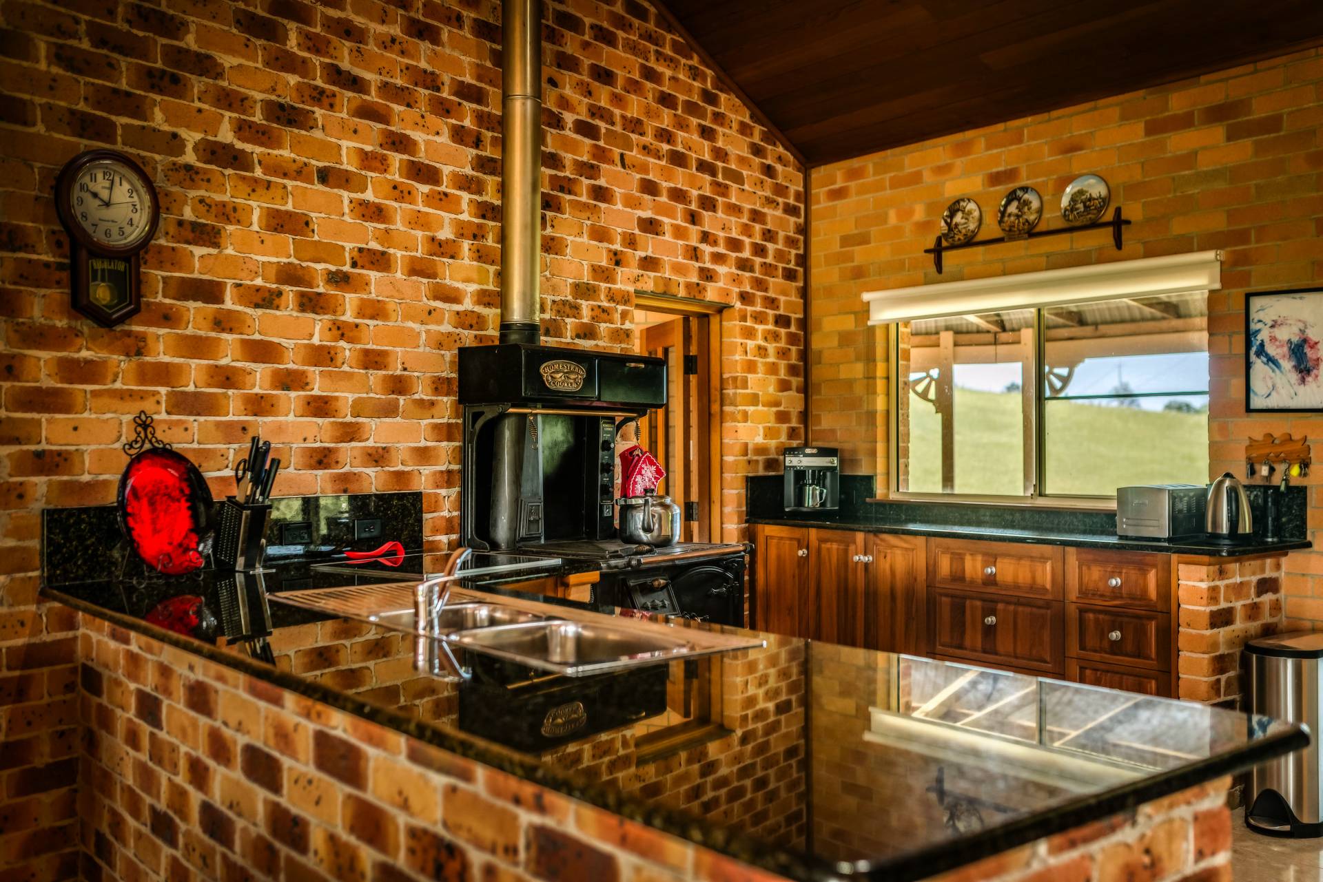 • Kitchen with dual electric / wood stove, walk-in pantry, granite bench tops.
