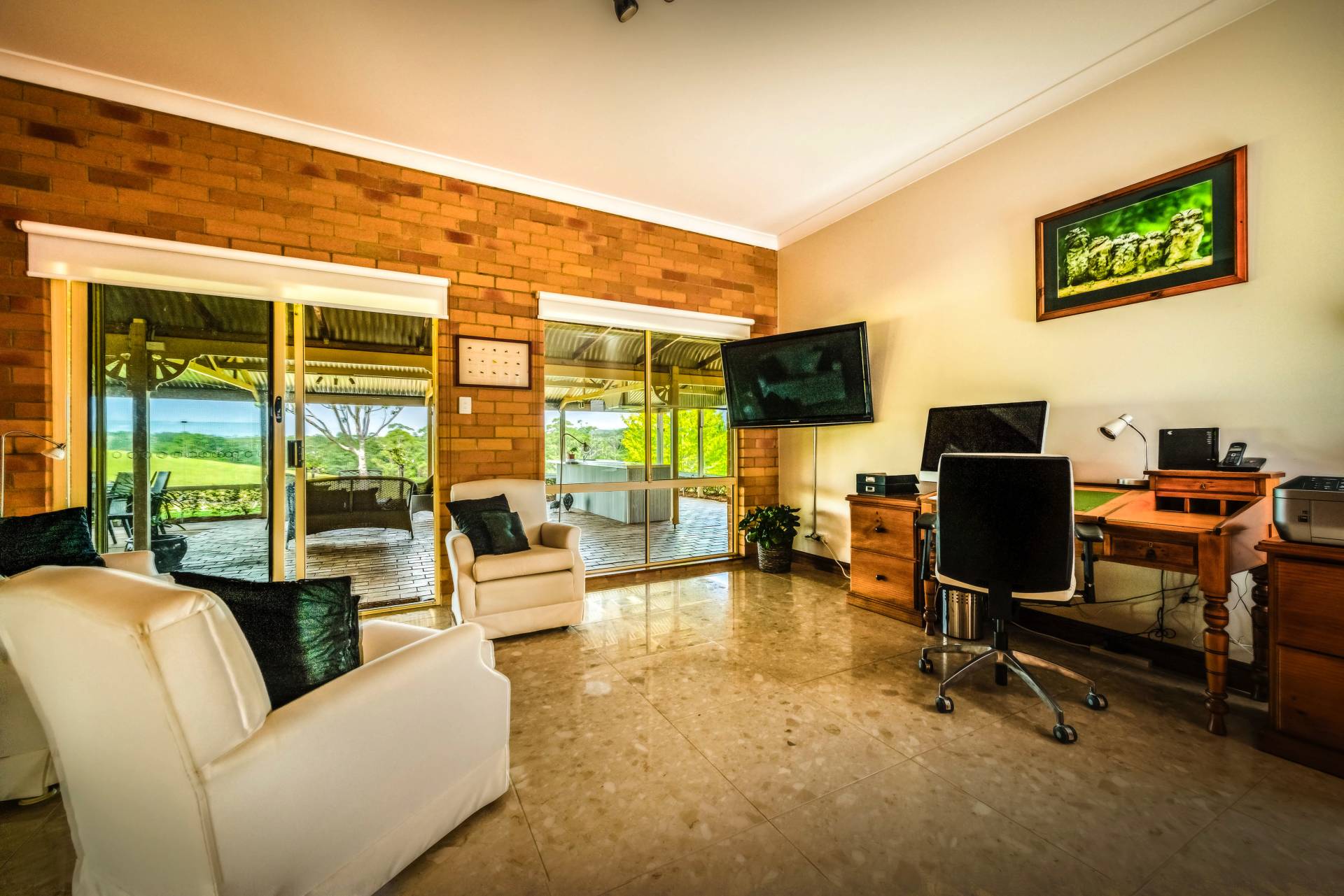 The spacious four bedroom (plus study), two bathroom homestead with its fastidiously designed interior offers luxurious comfortable living whilst enjoying spectacular rural views from the bedrooms and living areas. The kitchen offers the most avid cook the opportunity to dish out culinary delights with the dual electric / wooden stove and ample granite benchtop space. The large undercover entertainment area has been purpose built with internal barbeque facilities, sink and stainless steel bench. Additional rooms include spa and sauna rooms, a study room, storage room and an electric automated double lock-up garage.