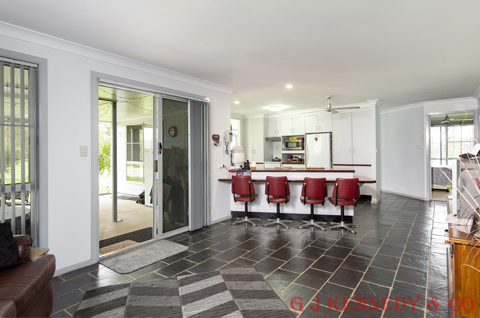 • Ceiling fans throughout and wood heater in lounge room;