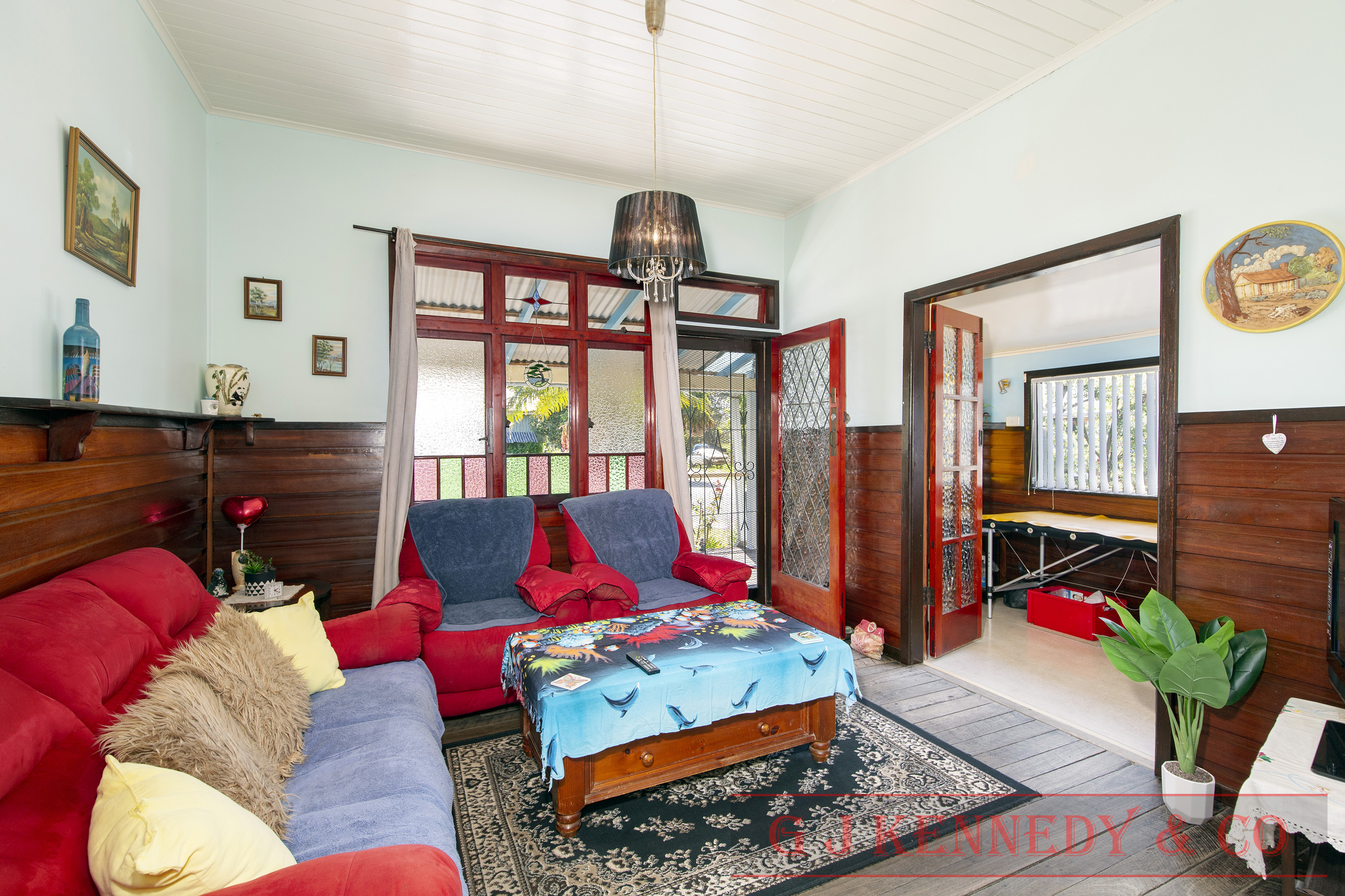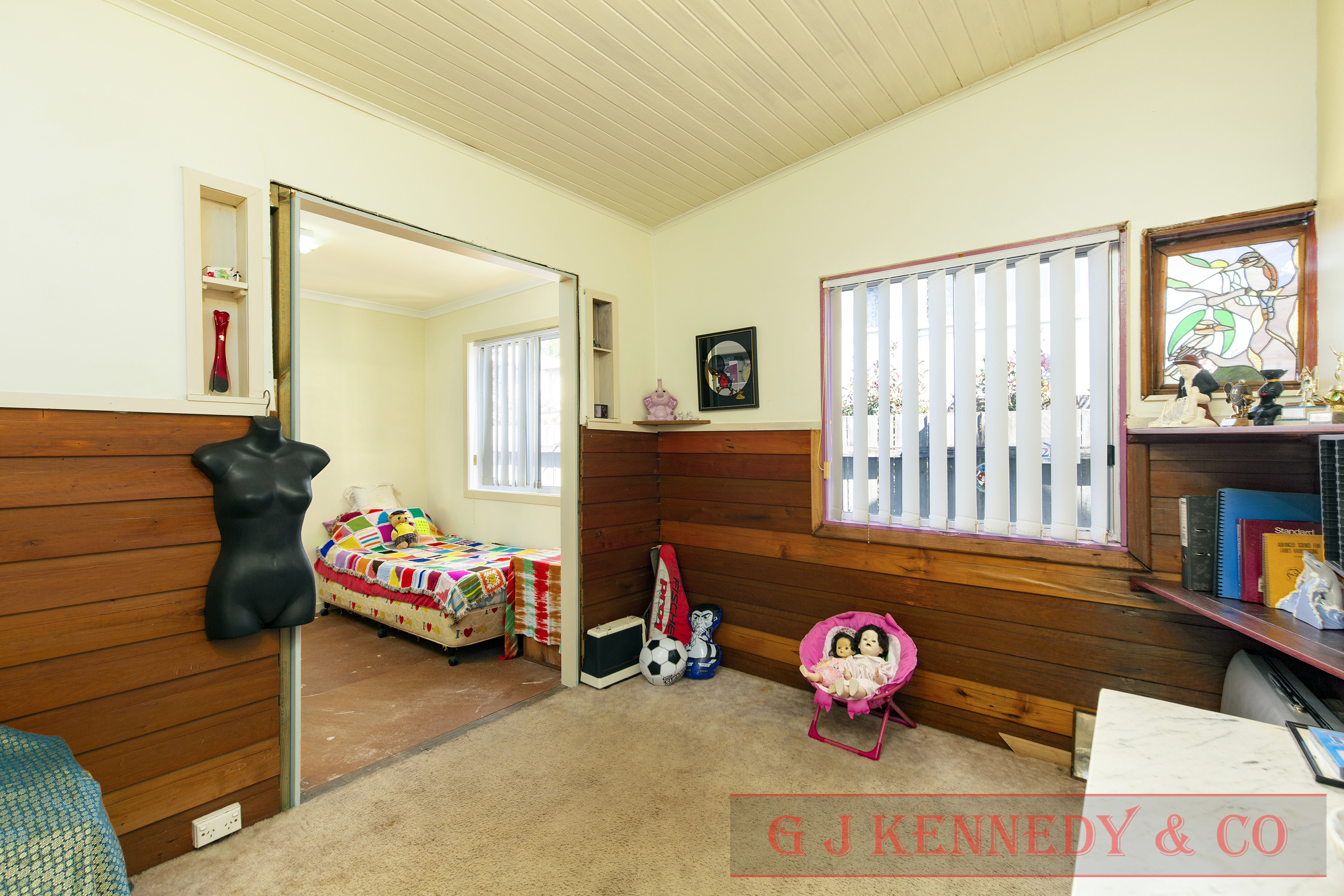 A lovely character filled three-bedroom home with stain glass windows, kitchen with modern electrical appliances, cozy lounge room with timber floors, light filled second lounge room or formal dining room, large family room with cupboard space, spacious bathroom with separate bath. The exterior of the property has established gardens and a fully fenced yard.