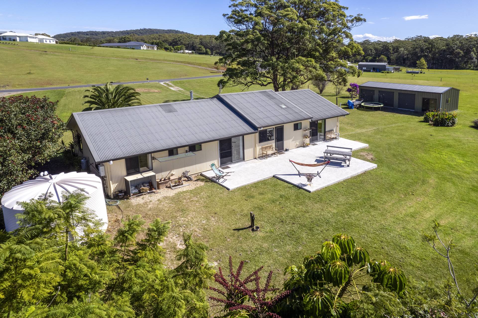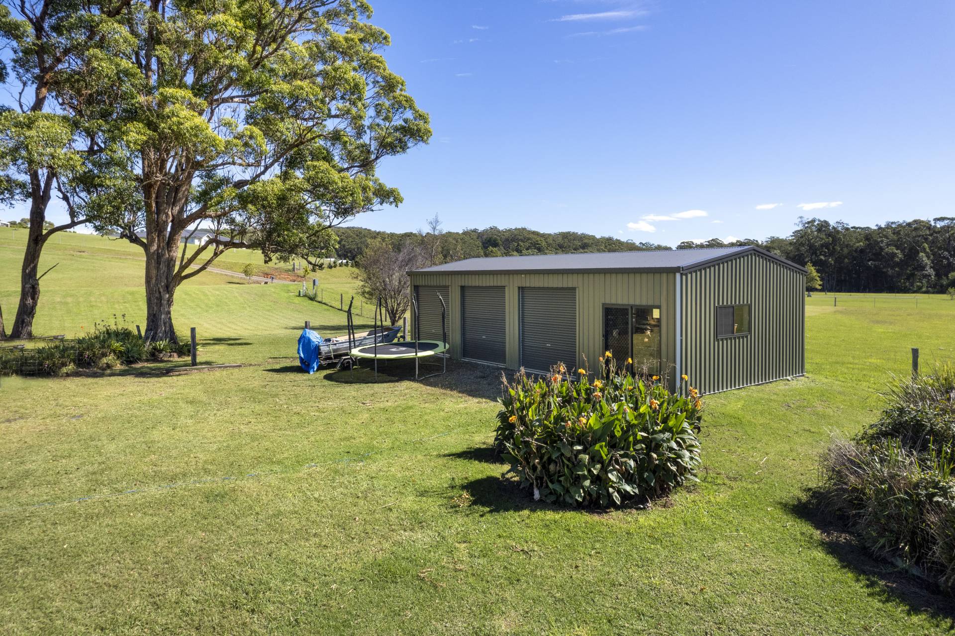 The separately detached 3-bay shed is completely lockable and has multiple access points, a concrete floor and a workshop area. Additional improvements include the 22,000 litre fresh water tank and gas hot water.